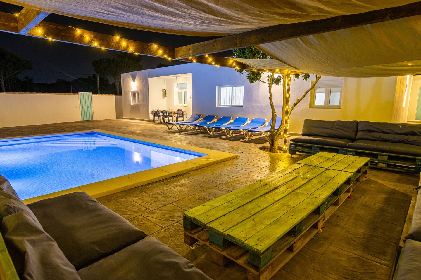 6 przestronnych pokoi, w tym 4 z nich posiada podwójne łóżko, jeden dwa łóżka piętrowe i kolejne 3 łóżka piętrowe. 3 łazienki z toaletą, basen ze słoną wodą, grill, miejsce na relaks, kuchnia z przekąskami, internet…